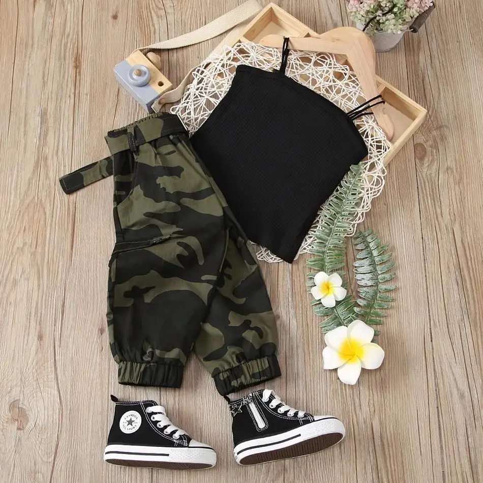 This Toddler Girl Black Camisole and Camouflage Pants Set is perfect for your daughter if you want them to look fierce and girly. This set is a combination of great style and comfort.