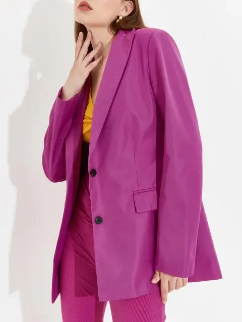 Add a pop of color to your lazy airport outfit with this pink blazer.
