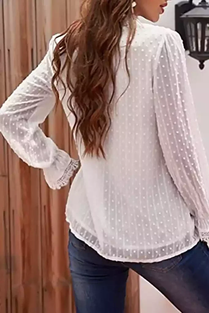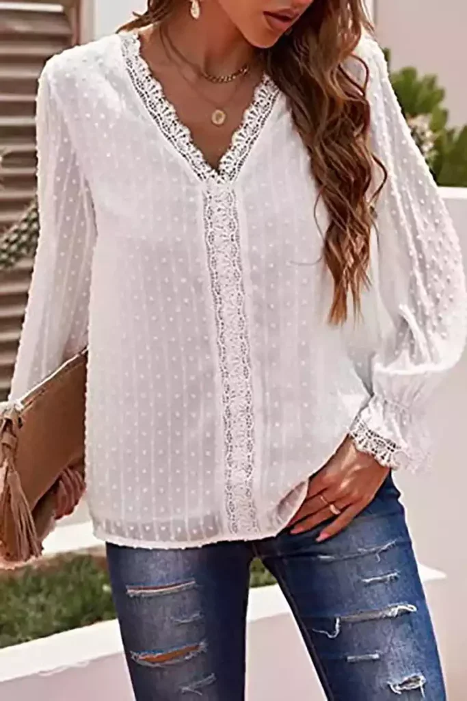 This Lace Trims Bubble Sleeve V-neck Top is made of lace trims and v-neck is the perfect accessory to highlight life’s most precious moments.