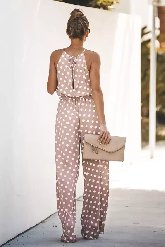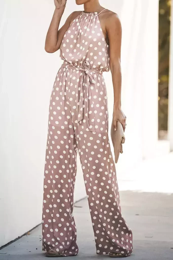 Add some prints to your new season wardrobe with this Sleeveless Ruching Tie Polka Dot Jumpsuit. Featuring a polka dot print, sleeveless design, and a tie at waist detailing. Just add simple accessories for an everyday look that will have heads turning.