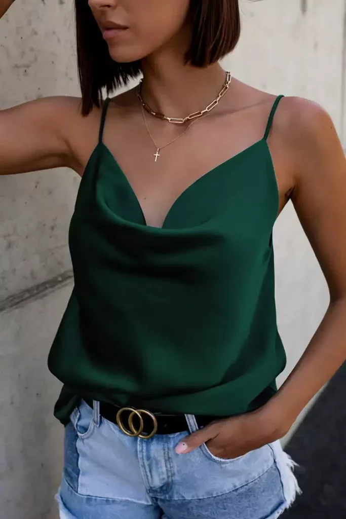 Add this Drape Collar Sleeveless Fitted Top to your wardrobe basics. Featuring polyester and spandex material with a drape collar and a sleeveless desgin. Effortlessly style with your go-to bottoms and simple accessories to complete the look. Pair this with your favorite jeans or denim shorts to complte that sexy at elegant looks.