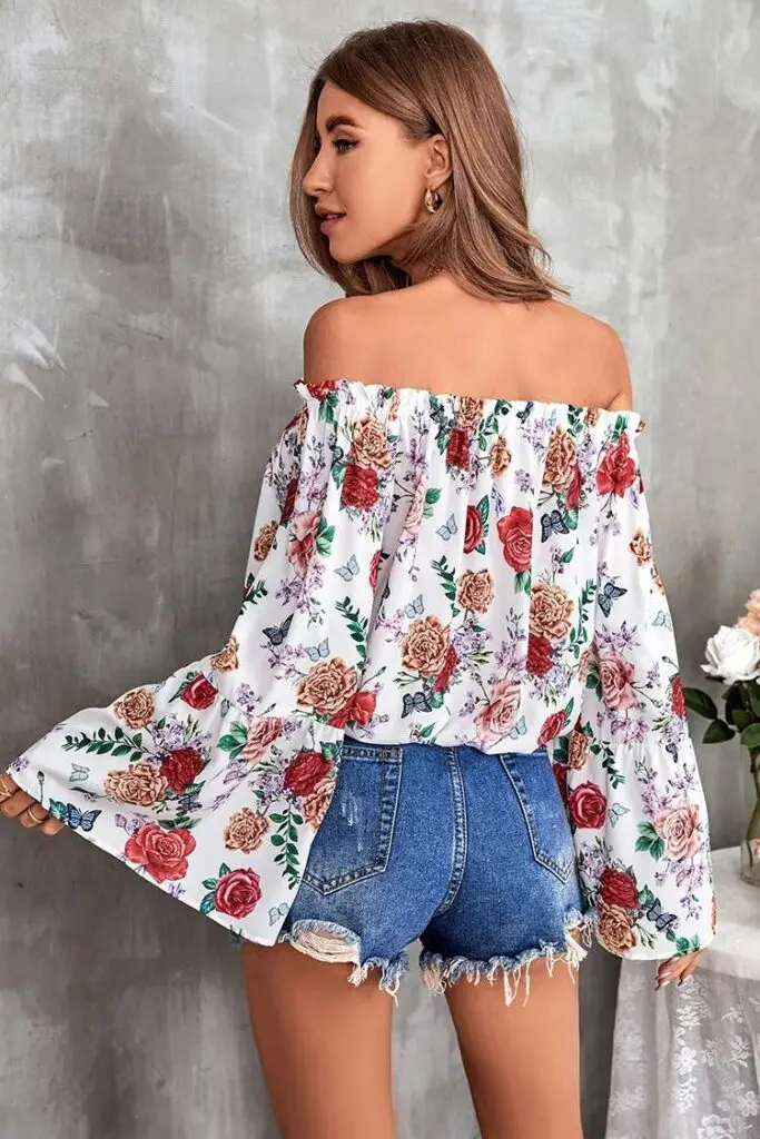 This Long Sleeve Ruffle Off Shoulder Top features features like ruffles and floral prints. It’s a great choice for a date or for everyday wear.