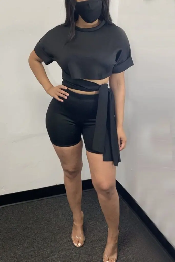1. Fashion Short Sleeve T-shirt Shorts Black Casual Set
