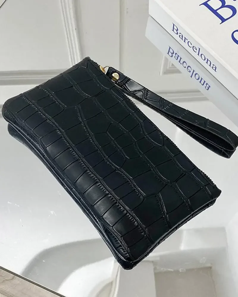 This Zipper Decor Croc Embossed Clutch Bag will complete that look that you’re looking for. Its color and croc skin pattern, it adds that expensive look to your whole outfit.