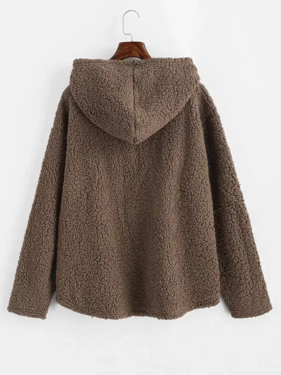 Casual, cozy and oh-so-cute is the impression you’ll make in this fluffy pullover done in faux shearling with a classic kangaroo pocket and styled with a dropped shoulder to relax the arms.