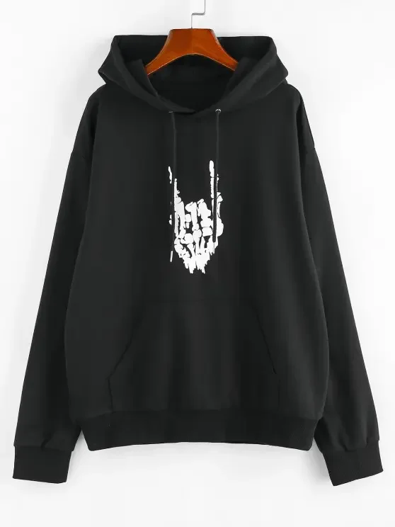 Never give up your comfort with this graphic hoodie. The skeleton hand graphics in the front add a playful touch. And the relatively short length makes it perfect to pair with high waisted bottom to flaunt your figure.