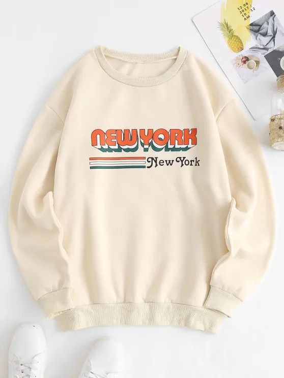 1. Rib-trim NEW YORK Graphic Fleece Lining Sweatshirt