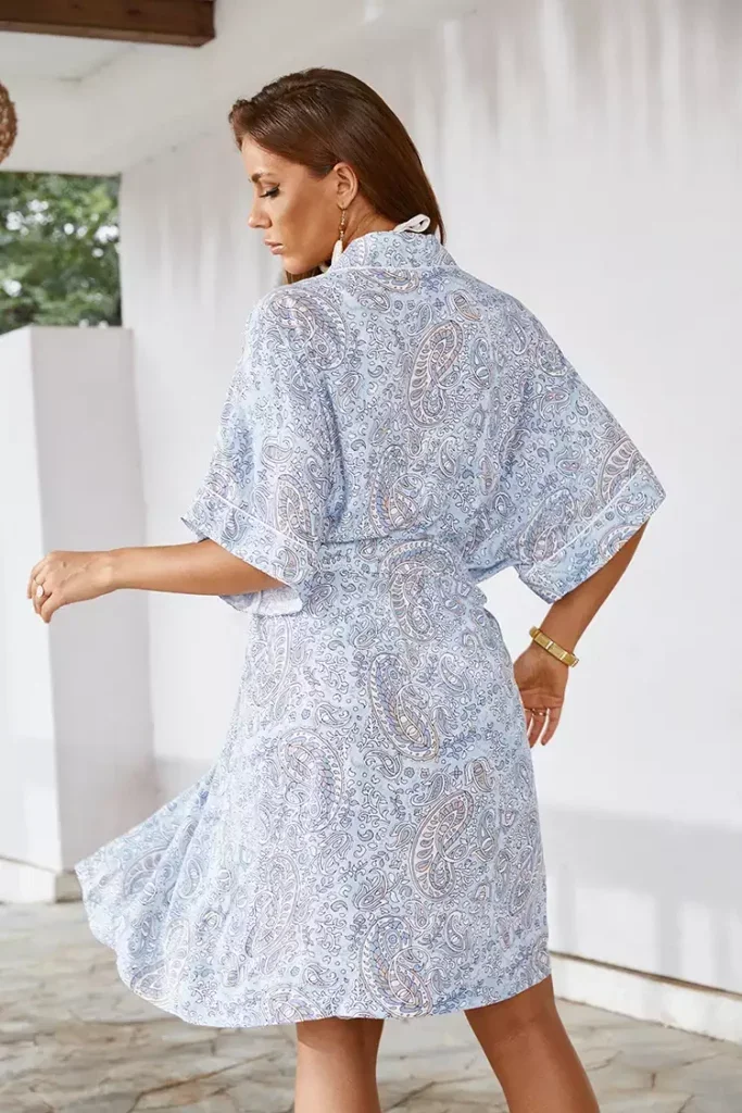 Wear our Gracie Blue Kimono Open Front Cover Up over a one-piece of your choice for resort wear vibes. Relaxing on lounge chairs by the pool of a high-end hotel while sipping organic juices and reading a good book in the rays is what this outfit is all about! This flowy kimono is a terrific way to bring attention to your one-piece swimsuit.