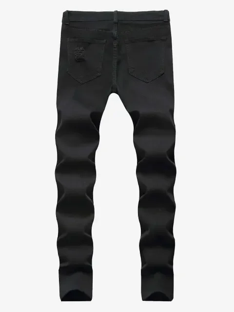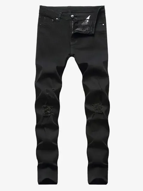 This Solid Color Frayed Ripped Zipper Fly Jeans is perfect for any black tops you have. It adds a unique flavor to your outfit. It is both stylish and comfy because of its nice fitting and materials.