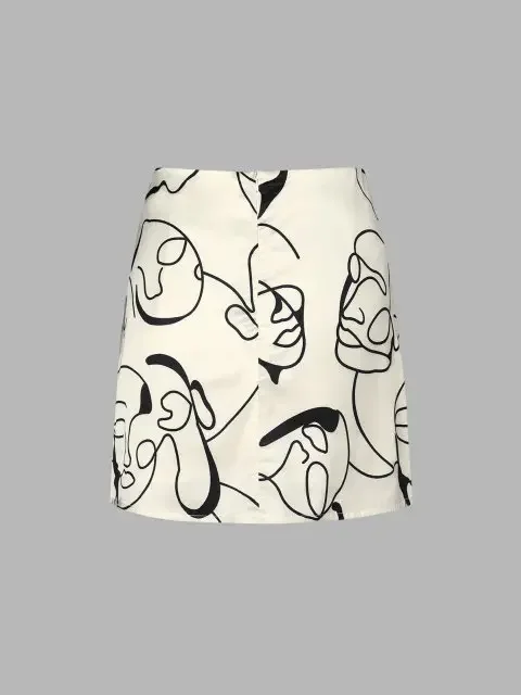 A chic and charming choice for summer vacations, this mini skirt features a cool sketching pattern and includes a back-zipper closure. Pair it with a crop top of your choice to complete the look.
