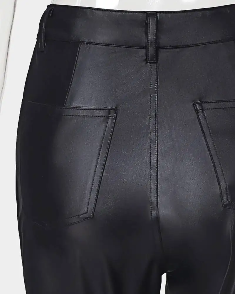 Simple yet charismatic— this PU Leather High Waist Single Button Pants is perfect for your sweater. With its structure and features, this will bring your boring sweater to the next level.