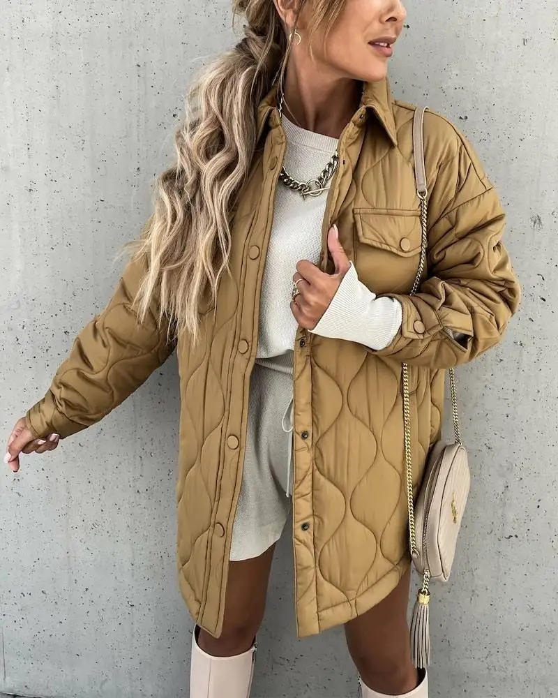 This cool Long Sleeve Snap Button Flap Detail Puffer Coat goes well with any outfit, especially your simple sweater. With its features and materials, it’s one of the most convenient staple to look stylish and protect yourself from cold.