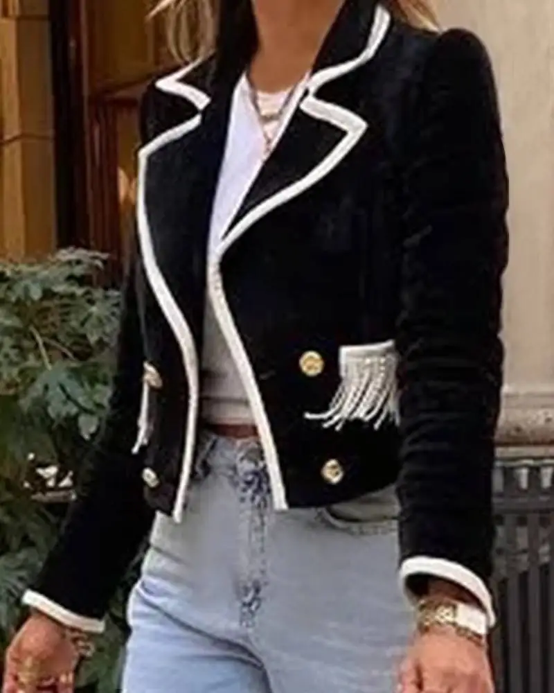 Oozing with elegance and chicness— this Contrast Binding Button Tassel Decor Blazer Coat will definitely help you achieve that girl boss vibes.