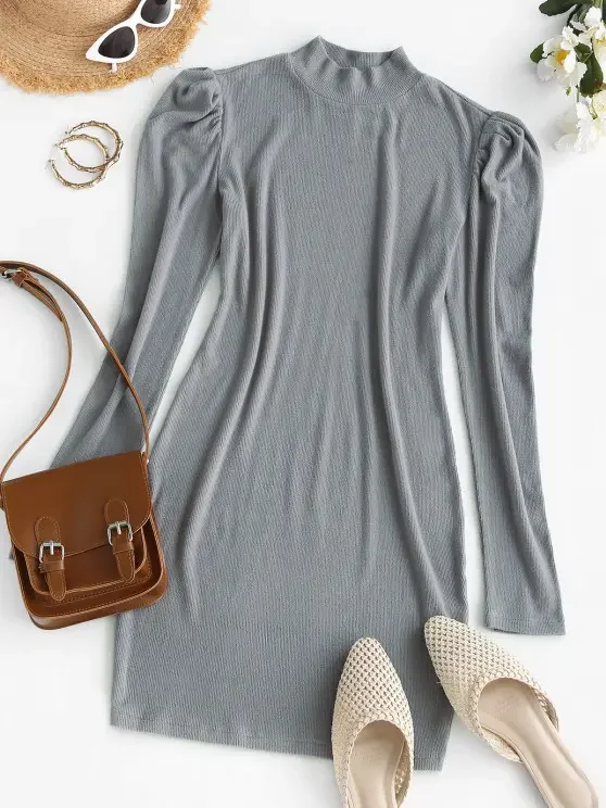 Cute and comfy with soft ribbed knit, this slinky mini dress brings a little romance to a classic bodycon dress with tidy puff sleeves. Simply swap out sneakers for heels to take it from day to dating night.