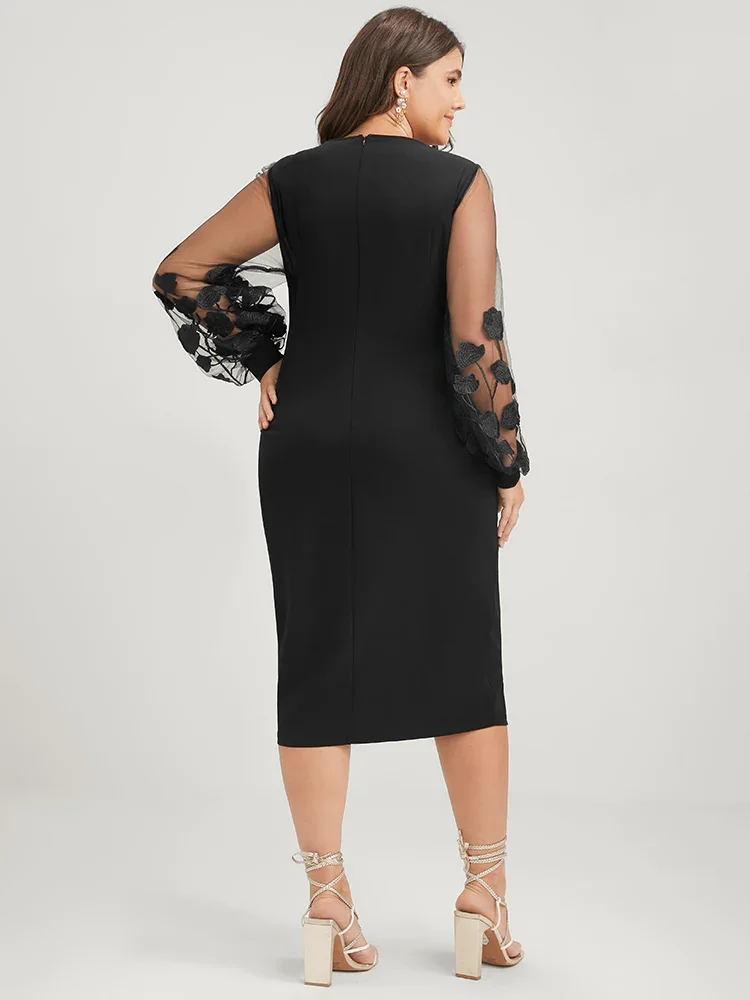 Are you looking for an alternative to the standard maxi dress? Give a midi-length dress a shot! The sheer, bejeweled sleeves of this little black dress take the trendiness of midi length skirts to new heights.