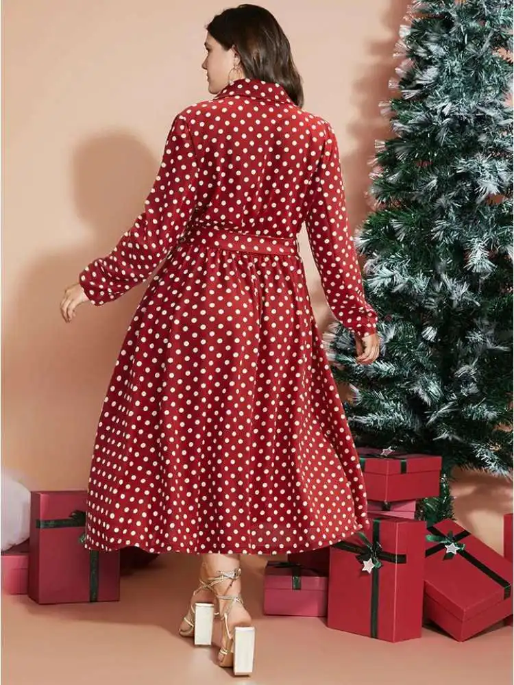You’ll feel confident and beautiful in this dress, knowing that you’re wearing a classic style that will never go out of fashion. The bold red color and playful polka dots make a statement, while the practical pockets and flattering belted waistline add functionality to its design. Don’t miss out on the chance to elevate your wardrobe with this stunning Polka Dot Lapel Collar Pocket Belted Dress – it’s sure to become a go-to favorite in no time!