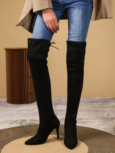 Shop here: Pointed Toe Stretchy High-heeled Over-the-knee Boots