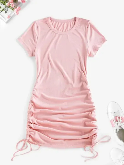 This pink dress appears chic and secure when worn with the cool dark tones of black and navy. Pink is given an extra professional tone by being softened with beige. For a natural palette, combine with green.