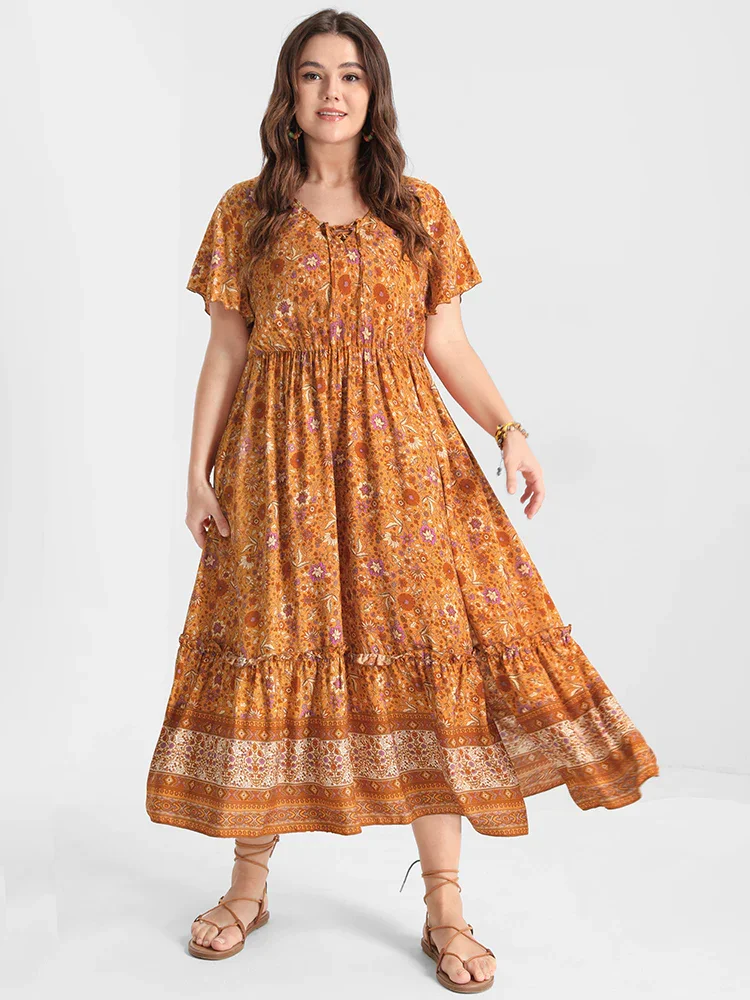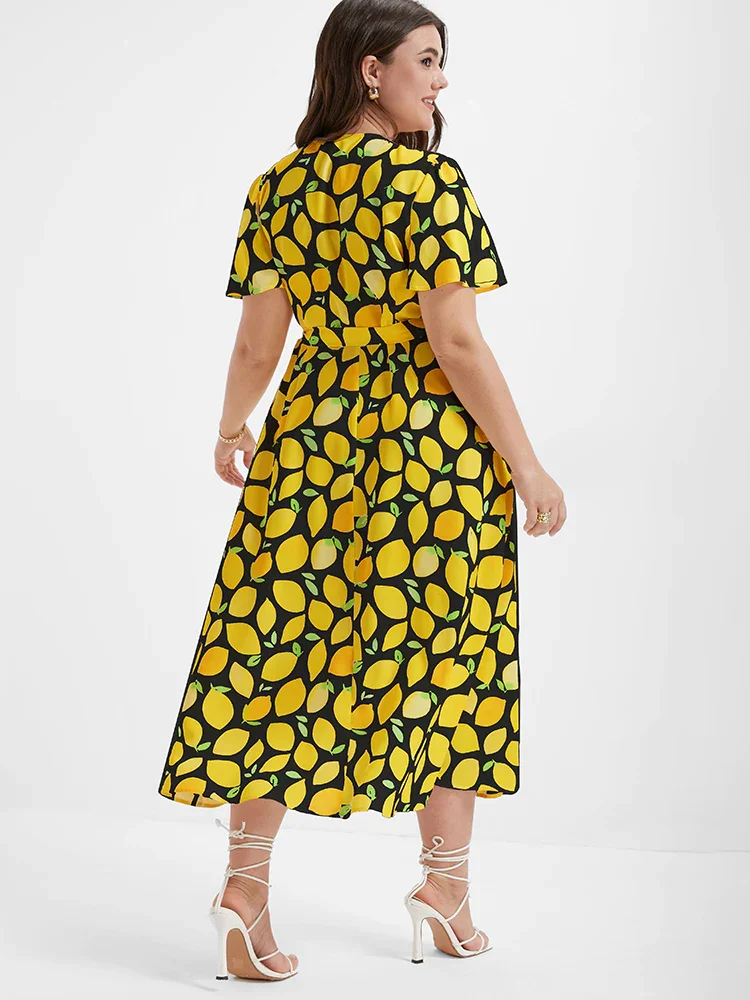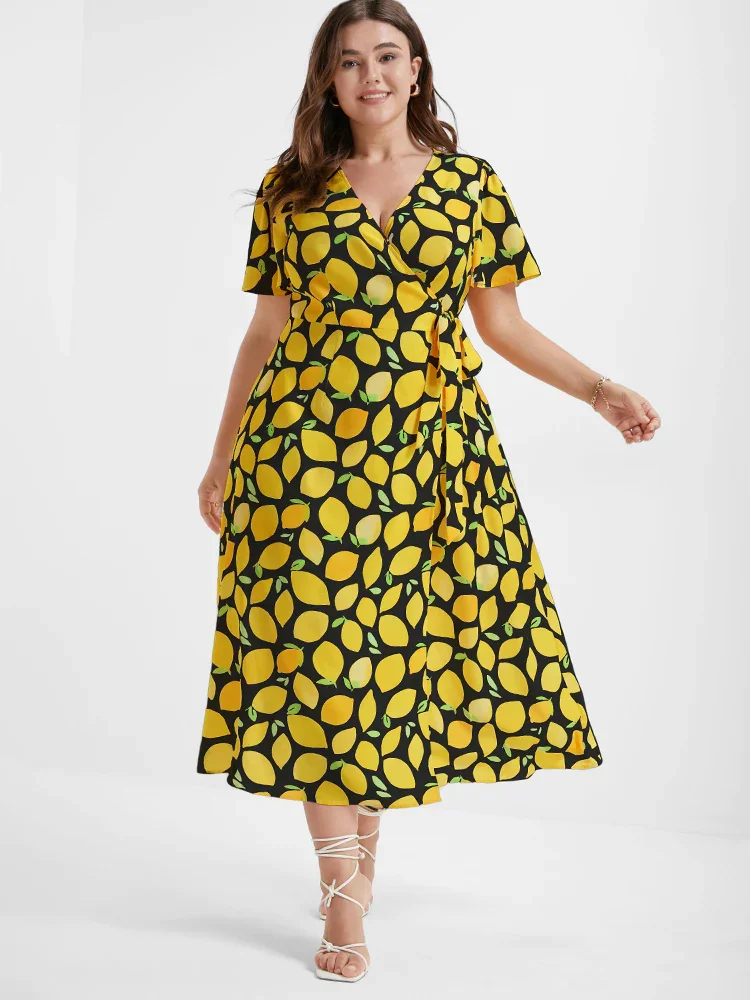 A fruit print makes for a great outfit combination. This lemon midi dress will brighten up your summer wardrobe without breaking the budget. An optional denim jacket completes the look.