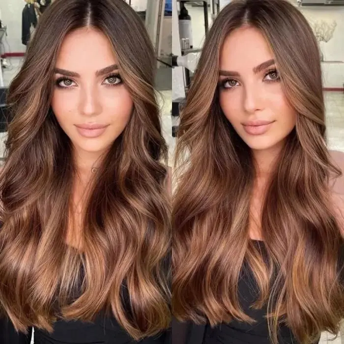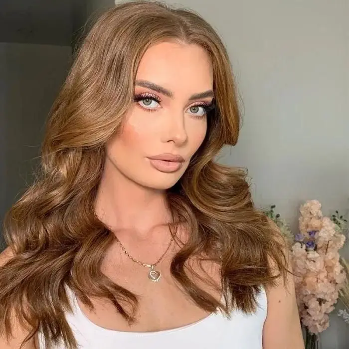 A timeless beauty that will go with anything you wear thanks to her dark brown hair.