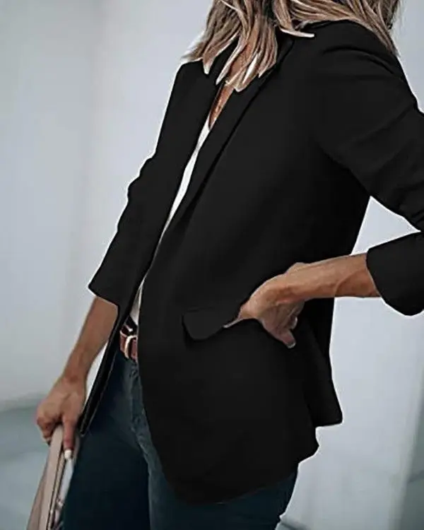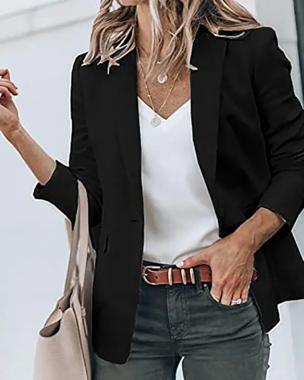 The Long Sleeve Lapel Collar Blazer is fully lined and can be worn with anything from a t-shirt and jeans to a dress and heels to the office. The blazer can be machine washed in cold water, adding to its convenience; however, drying it is not recommended.